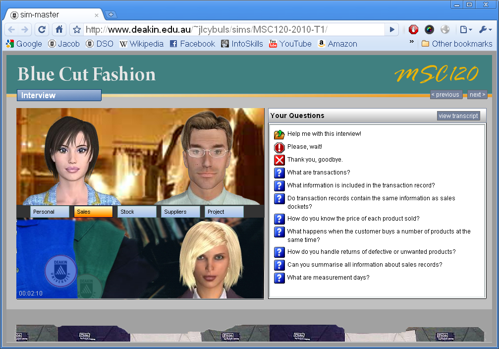 Several faculties (B&L, Arts, H&BS) and Learning Services collaborate on developing the simulation environment and