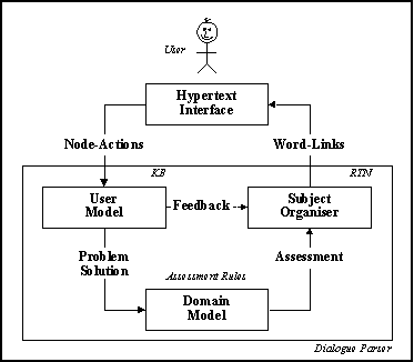 The three elements of the user-centered hypertext management, i.e. the domain and user models plus the subject-organiser, combine into a single module interpreting user input into the system and producing an appropriate feedback to the user. The module is, thus, responsible for parsing the student/tutor hyper-dialogue.